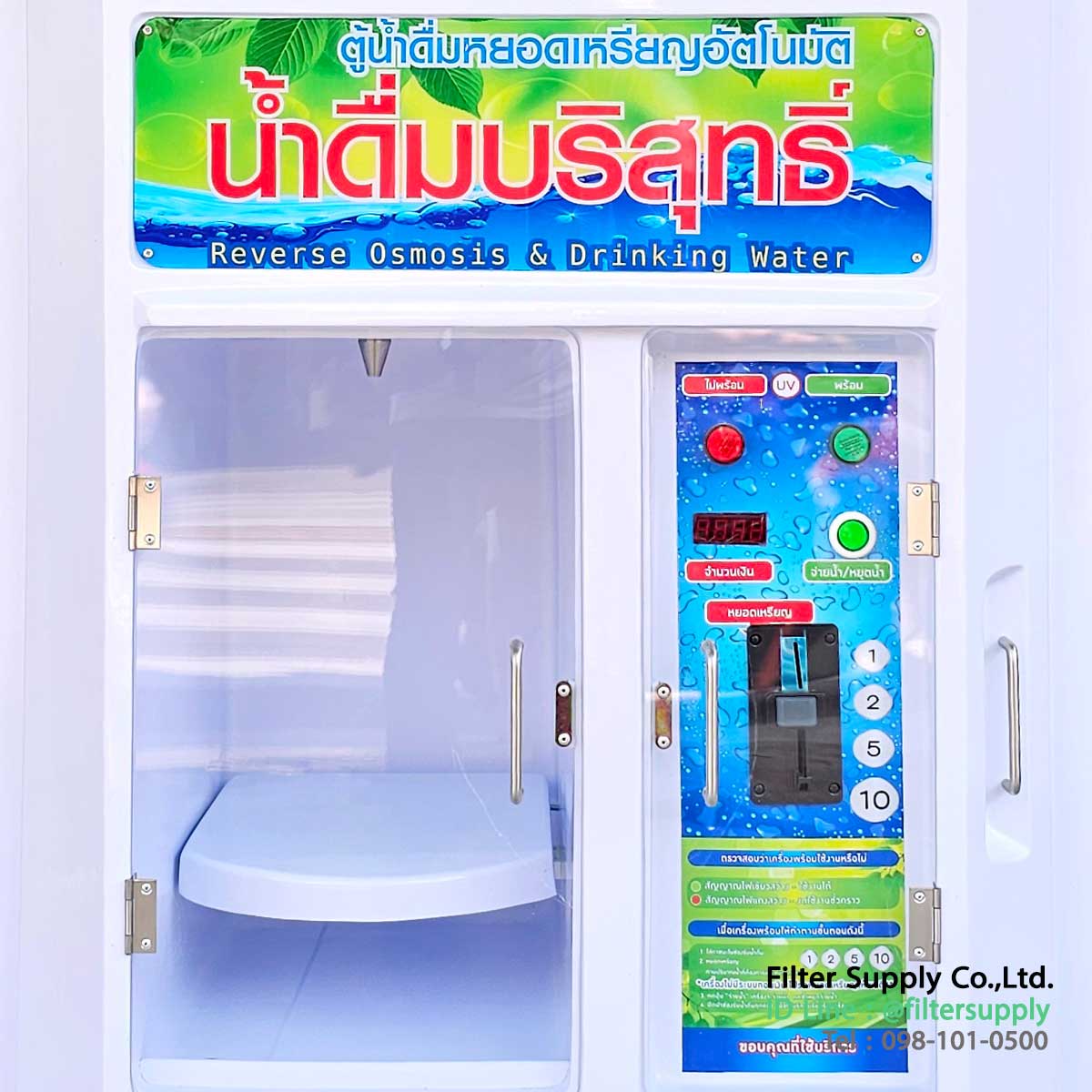 หน้าตู้ ATM สำหรับกดน้ำหยอดเหรียญ แบบติดผนัง รุ่นนี้เป็น Slot หยอดเหรียญธรรมดานะครับ ไม่ใช้ของ ICT สำหรับจ่ายน้ำดื่มที่ผ่านการกรองด้วยระบบ RO เป็นหน้าตู้พร้อมระบบหยอดเหรียญ ไม่รวมปั๊มจ่ายนะครับ รายละเอียดอุปกรณ์ จะตามรูปเลยครับ