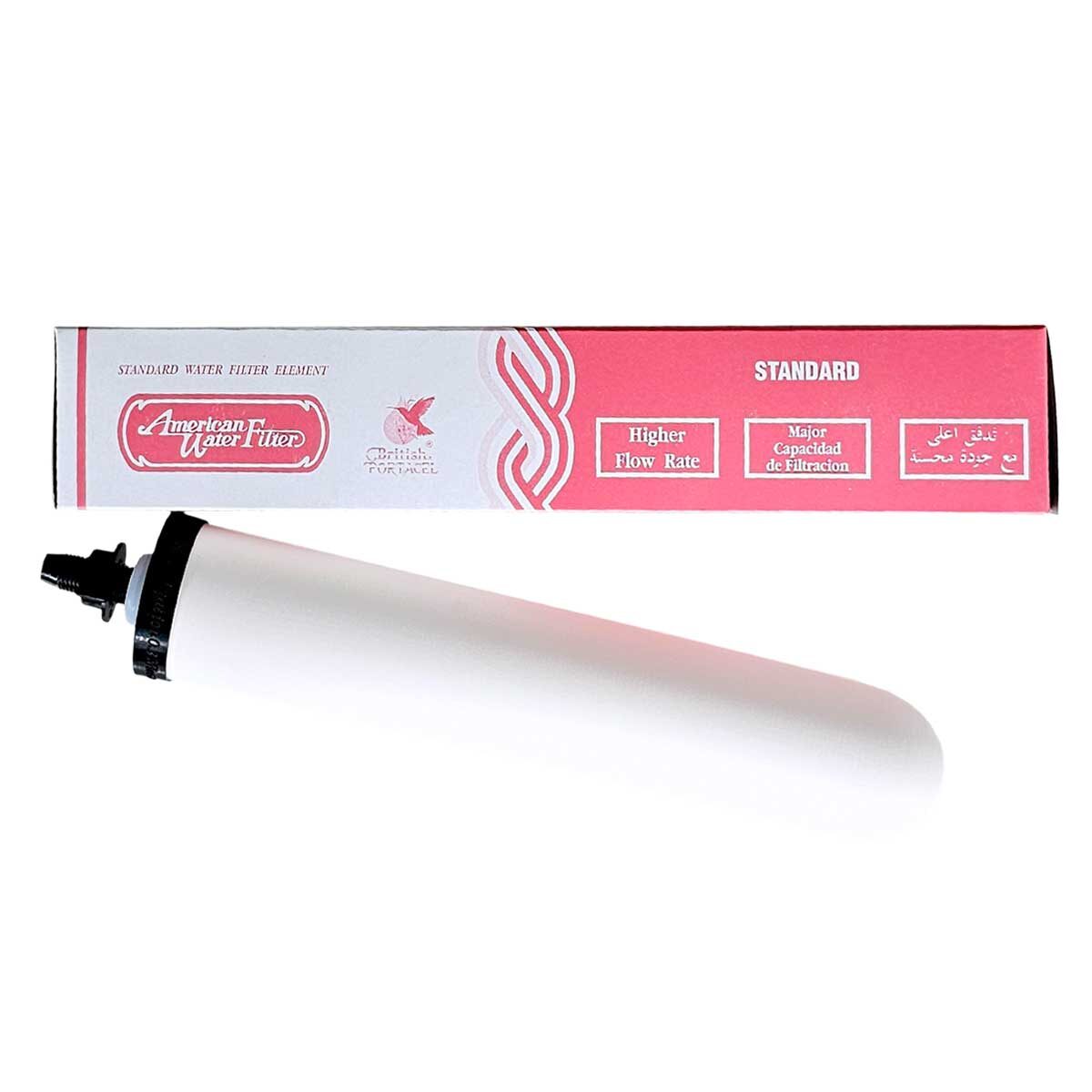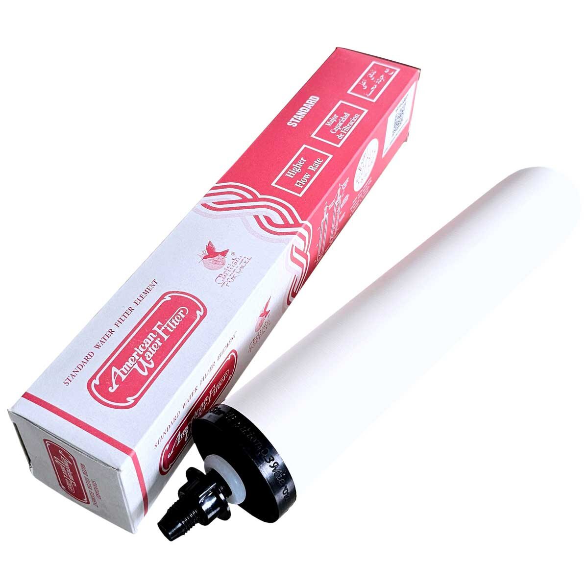 Ceramic American Water Filter Pink ไส้กรองน้ำเซรามิคหัวเกลียว กล่องชมพู ไส้กรองน้ำเซรามิค หัวเกลียวฝาดำ ไส้กรอง ทำจากวัสดุเซรามิกขึ้นรูปมีลักษณะเป็นแท่ง ทรงกระบอกสีขาว ด้านหนึ่งเป็นลักษณะมนด้านปลายมีลักษณะเรียบ และมีฝาพร้อมประเก็นยางกันซึมอีกด้านหนึ่งเป็นฝาเกลียว สำหรับเชื่อมต่อกับกระบอกบรรจุแบบ Inline การใช้งานส่วนใหญ่ เป็นไส้กรองที่ใส่ในขั้นตอนที่ 4 ของเครื่องกรองน้ำ 5 ขั้นตอน หรือ ใส่ในถังกรองเซรามิค ที่ใช้กรองในระบบกรองน้ำอุตสาหกรรม