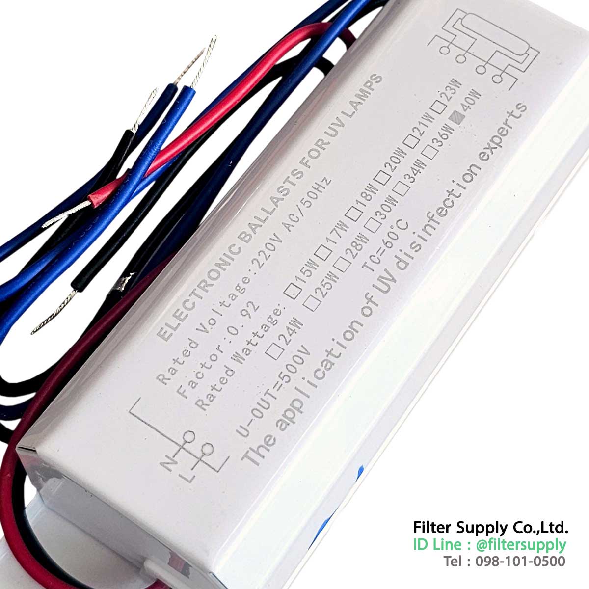 Electronic Ballast 40 Watt Ultra Fresh บัลลาสต์อิเล็กทรอนิกส์ สำหรับหลอด UV 40W เป็นบัลลาสต์ ที่ติดมาพร้อมชุด UV Ultra Fresh ขนาด 40 Watt เป็นรุ่นที่ใส่ได้พอดีกับชุด UV รุ่นนี้